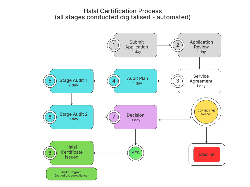 We aim to complete the Halal certification in 6 weeks, subject to the client's documentation provided to our team